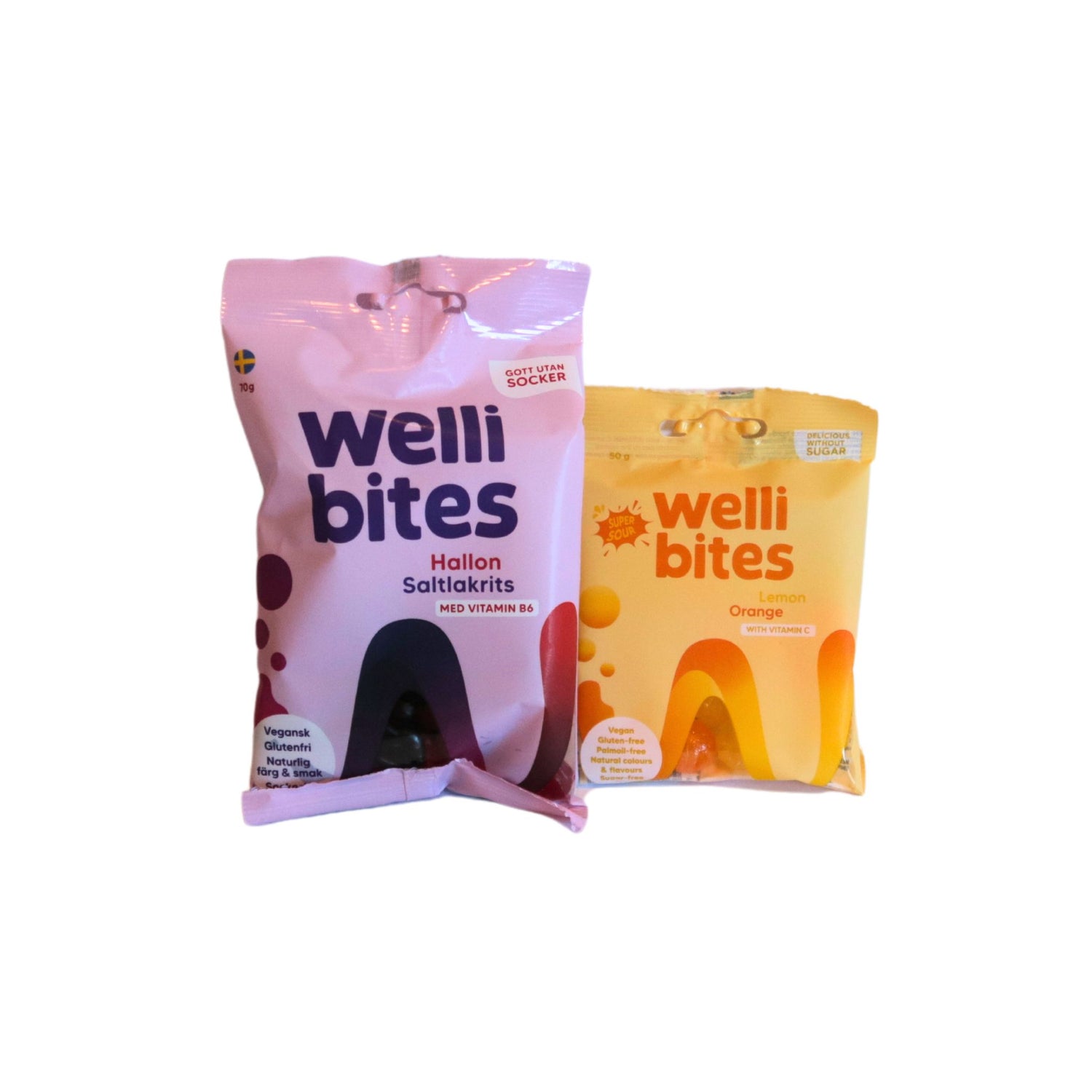 - Wellibites Super Sour Lemon & Orange 50g: För den som älskar en syrlig smakupplevelse, dessa godisbitar med citron och apelsin är ett måste. De är berikade med vitamin C, vilket gör dem till ett fräscht och nyttigt val.