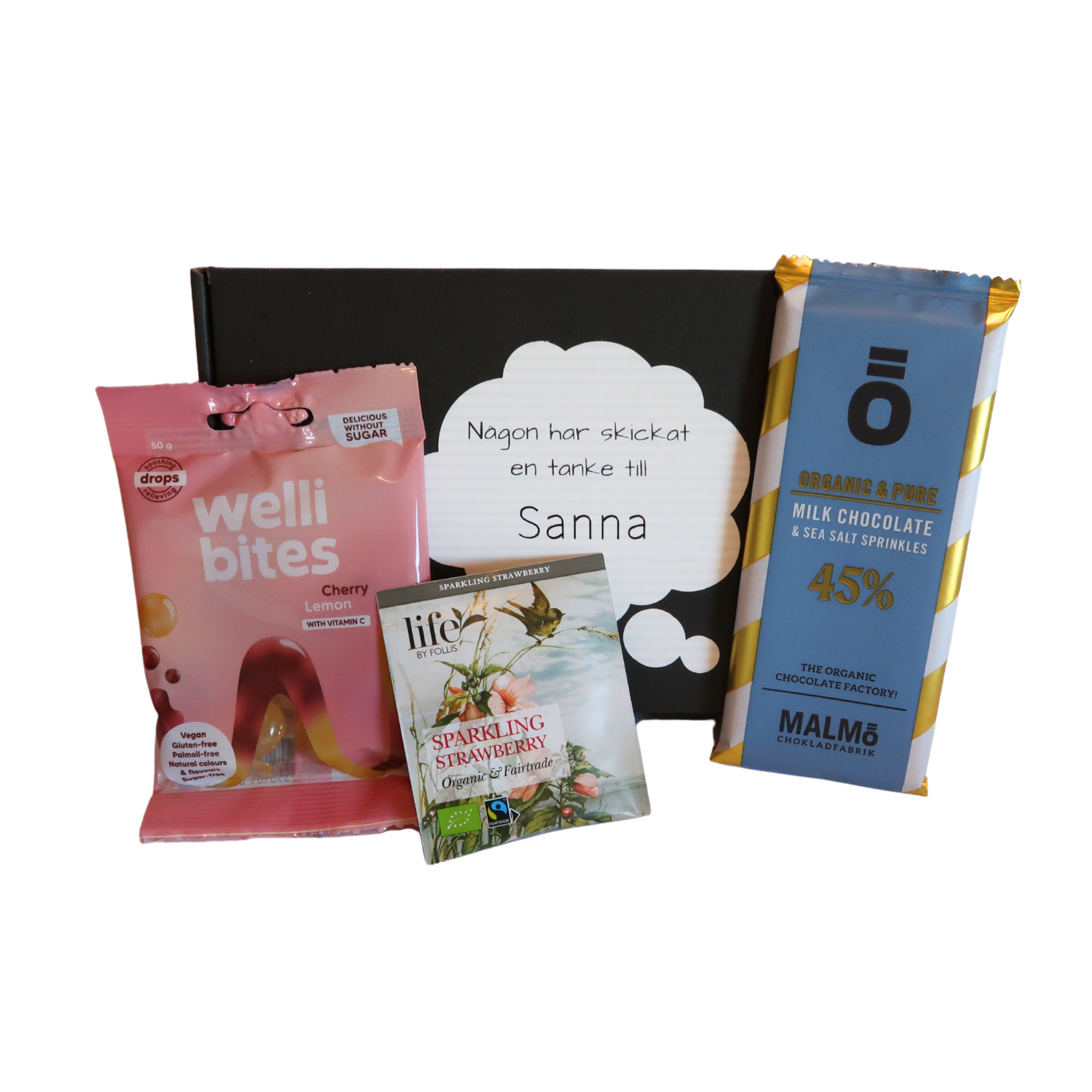 Varje gåvobox inkluderar en hälsning skriven med penna, vilket gör din present extra personlig. Skriv ett varmt och uppmuntrande meddelande så ser vi till att den levereras med boxen för att sprida glädje och omtanke.